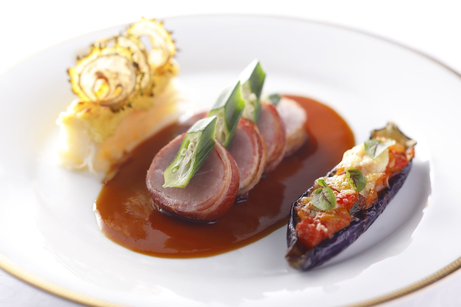 - ベーコンで巻いた豚フィレ肉のロースト オレンジソース(写真)