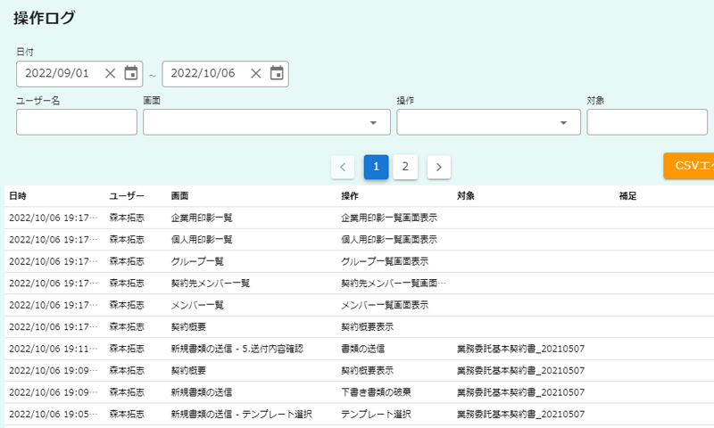 いつ、誰が何をしたか、どの契約書、書類に対してか、詳細なログを残します。 不正防止や誤送信対策にもつながります。