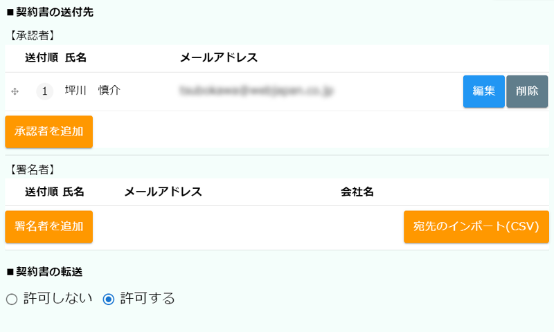 契約書など書類のテンプレートを作成しておき、呼び出すことで送信までにかける時間を短縮します。承認者もテンプレート化しておくことができます。