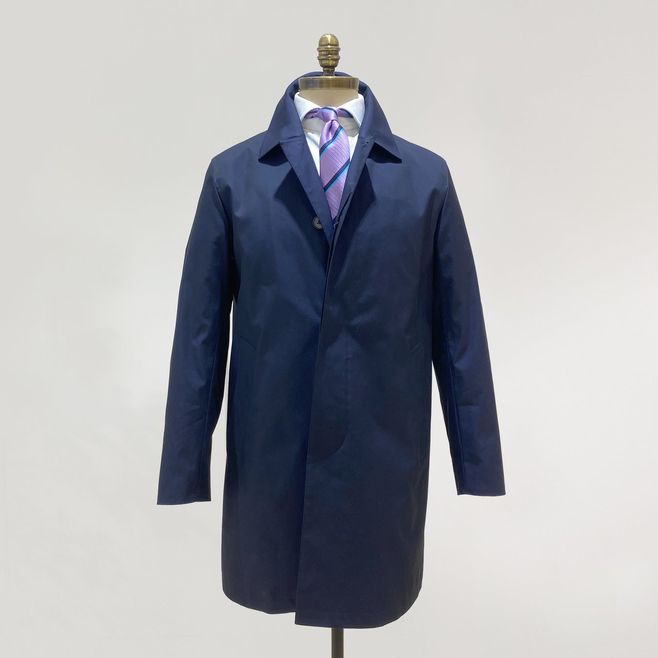 オーセンティックな比翼フロントデザインのバルカラーコート。ウエストシェイプはナチュラルで綺麗なラインになるように設計しており、ビジネスシーンでスーツにも合わせやすいデザイン。