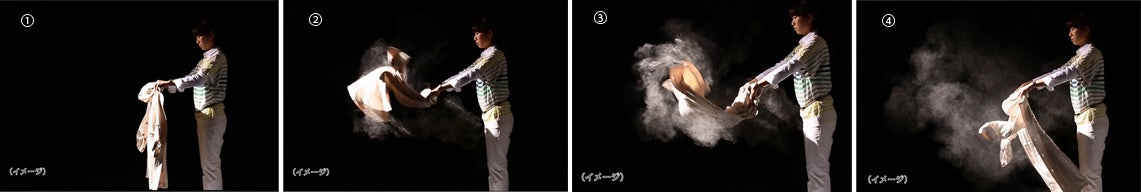 | コンセプト | 「花粉を屋内に持ち込まない」をコンセプトに、花粉が付きにくい素材を使用したアウター。 <花粉を屋内に持ち込まないようにするための着用法> 屋内に入る前にコートを脱いで軽く払う。こうすることで、コートに付着していた花粉の多くを落とすことができ、屋内に持ち込む花粉を大幅に削減することができる。 |