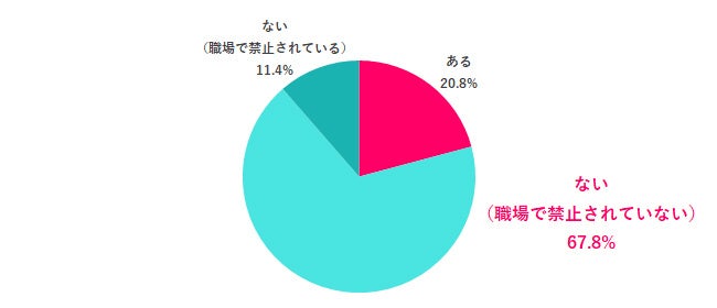 職場でバレンタインにチョコを渡す習慣があるかどうかを尋ねたところ、「ない(職場で禁止されていない)」が最も多く67.8%でした。次いで、「ある」20.8%、「ない(職場で禁止されている)」11.4%となっています。