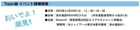 「ShiomiX(シオミックス)」初イベント! 地域とつながる「おいでよ潮見」11月29日(土)開催