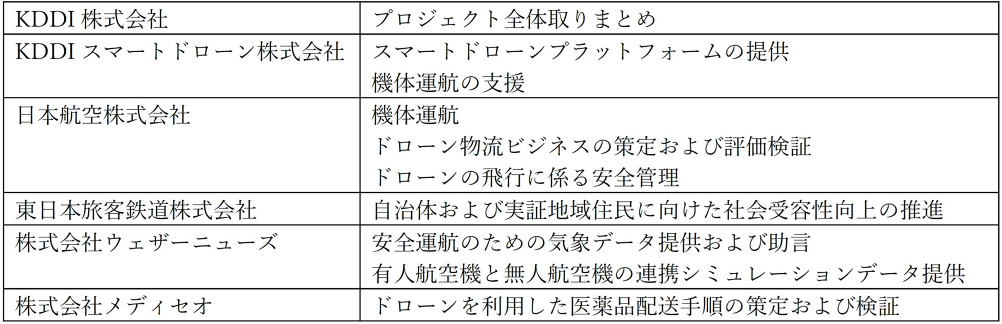 KDDI株式会社(本社:東京都千代田区、代表取締役社長:髙橋 誠)、KDDIスマートドローン株式会社(本社:東京都港区、代表取締役社長:博野 雅文)、日本航空株式会社(本社:東京都品川区、代表取締役社長:赤坂 祐二)、東日本旅客鉄道株式会社(本社:東京都渋谷区、代表取締役社長:深澤 祐二)、株式会社ウェザーニューズ(本社:千葉県千葉市、代表取締役社長:草開 千仁)、株式会社メディセオ(本社: 東京都中央区、代表取締役社長: 今川 国明)は2023年2月1日から、東京都あきる野市にて、ドローンを活用した医療物資輸送を1カ月間運用する実証(以下「本実証」)を実施します。