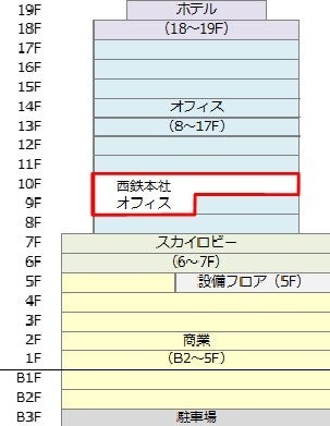 現在博多センタービルに入居する西鉄本社の全部門(11部門約700名)