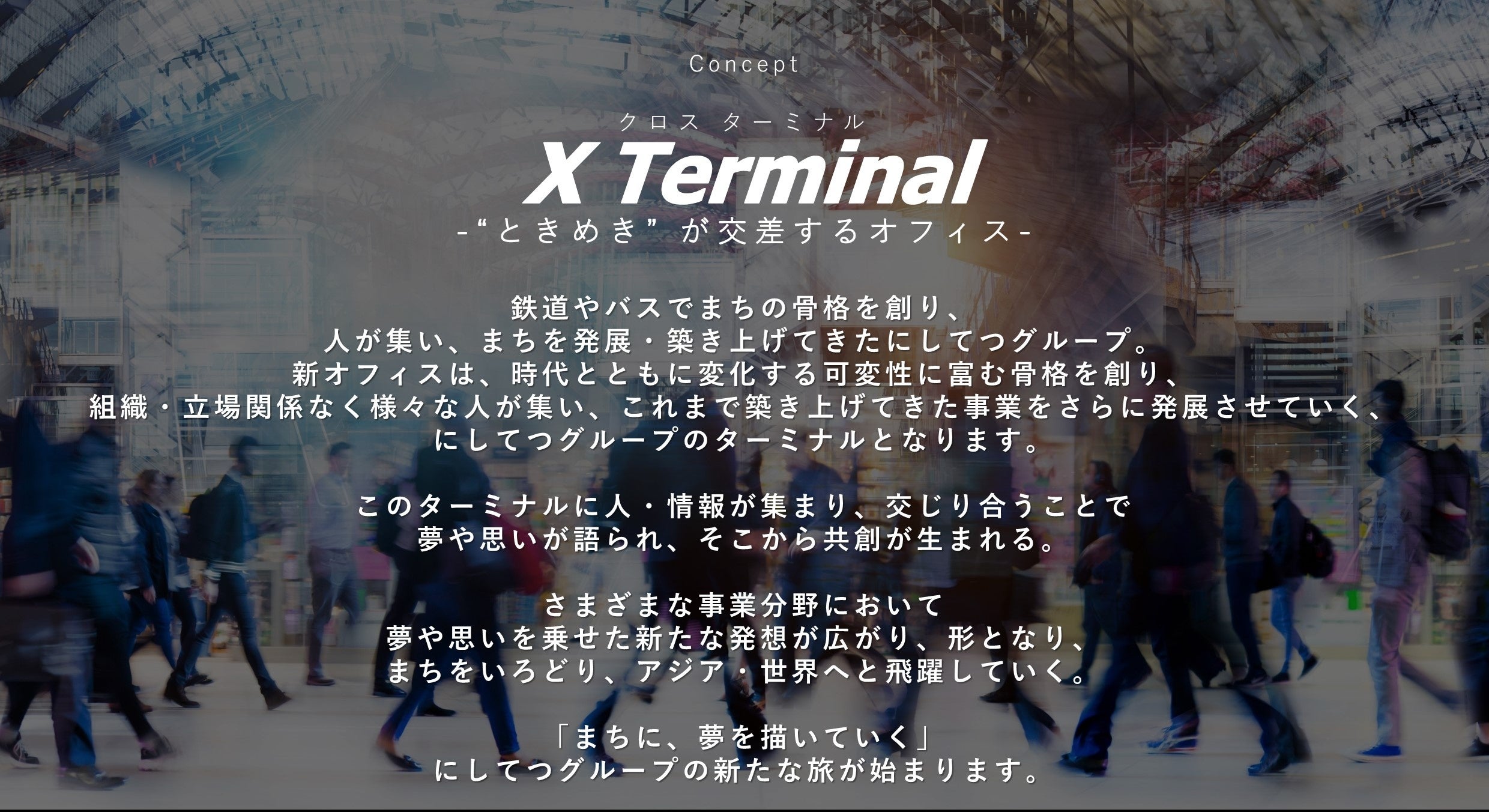 当社は、福岡・天神のまちづくりをけん引する企業として、新しい本社オフィスにさまざまな人・情報を集め、同ビル内や周辺の企業・団体との共創イノベーションを生み出し、福ビル街区建替プロジェクトのコンセプト「創造交差点 ~meets different ideas~」の実現を目指してまいります。
