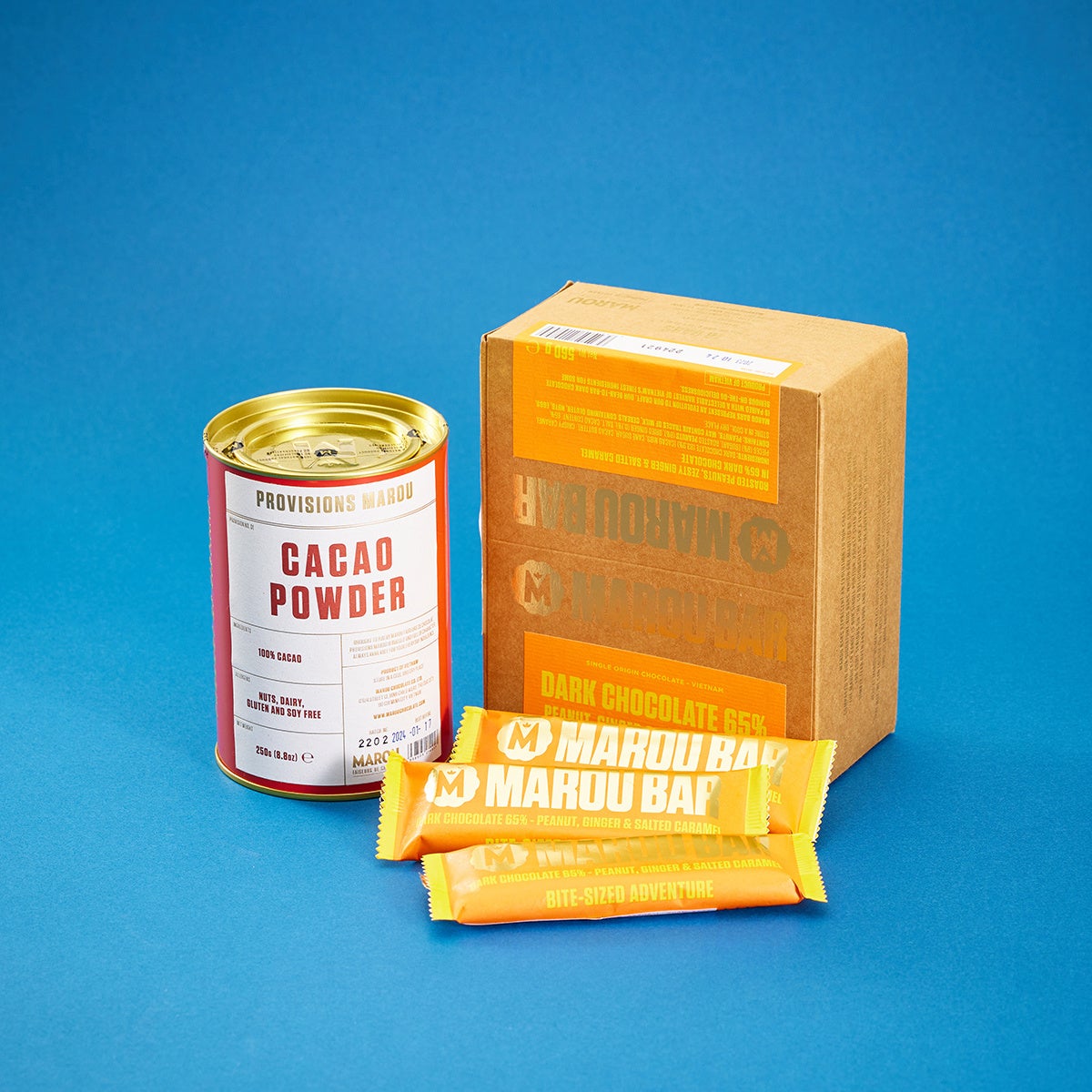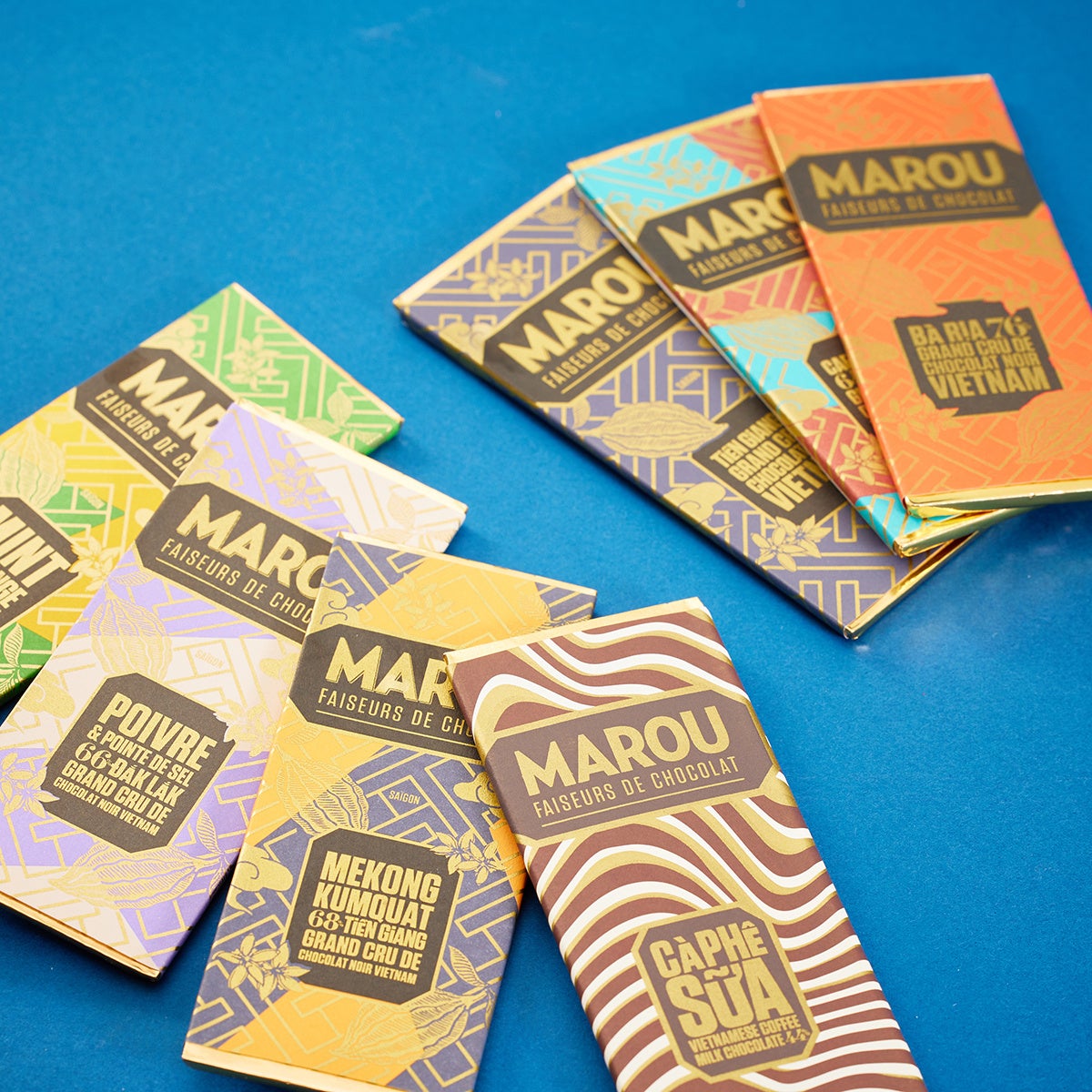 MAROU(マルゥ)はベトナムで生まれたビーントゥバーチョコレートメーカーです。2人のフランス人がベトナムを旅する中で出会った、高品質なベトナム産カカオ。このカカオに惚れ込んだ2人が2011年に創業したのが「マルゥ」です。シングルオリジンチョコレートの原材料は、ベトナムの6つの地域で収穫されたカカオときび砂糖だけ。カカオ産地の名前がそのままチョコレートの名前になっています。また、同じ産地の食材を使ったフレーバーチョコレートや、カカオパウダー・カカオニブも人気です。それぞれの産地ごとに異なる、フルーティで香り高く、深い味わいをお楽しみください。
