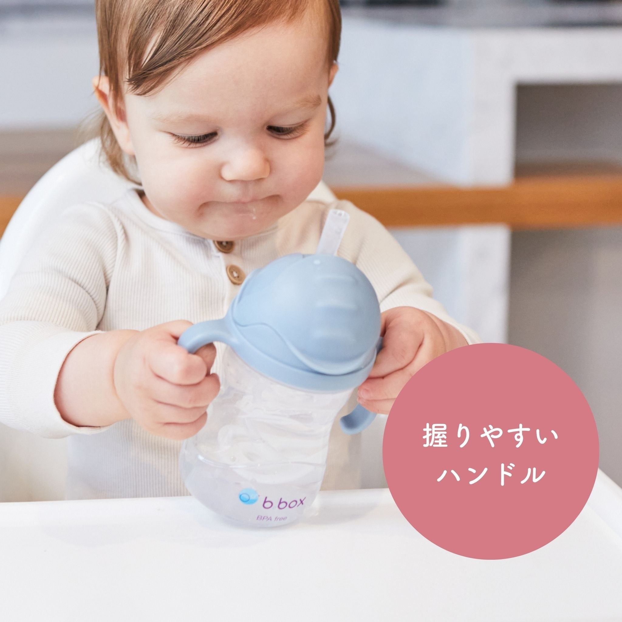 赤ちゃんが“自分で飲む”楽しさを味わえるように設計された「b.box」のストローマグ。 カップを傾けても中身がしっかり飲める「おもり付きストロー」が特長です。