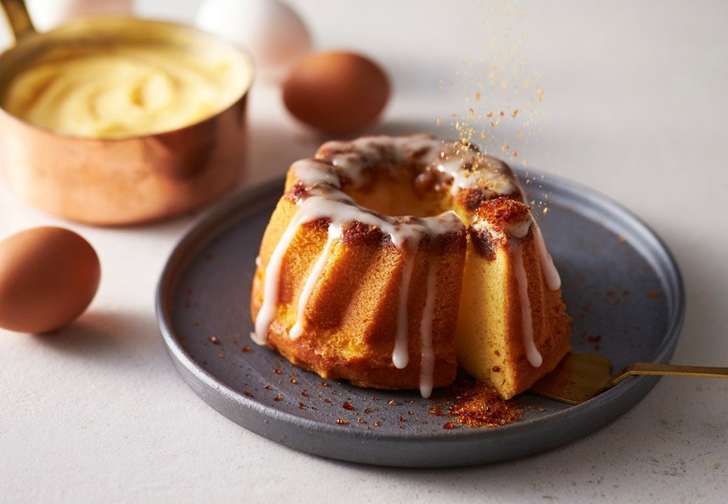 カスタードプリンを彷彿とさせる、しっとりとしたケーキ。仕上げのシュガーグレーズと香ばしいカラメルでやさしい甘さとまろやかな味わいに。