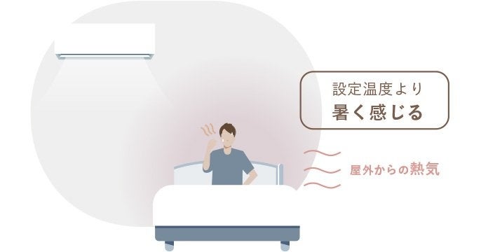 エオリアスリープの「快眠環境運転」は、ベッドサイドセンサーと連携し、身体が心地よく感じる温度を睡眠の経過時間ごとに制御。眠りはじめは低めの温度で運転。その後、室温上昇の分岐点を自動で判定し、徐々に温度を上げていきます。寝室の室温を自動でコントロールして、暑すぎず寒すぎず、睡眠に適した環境をつくります。