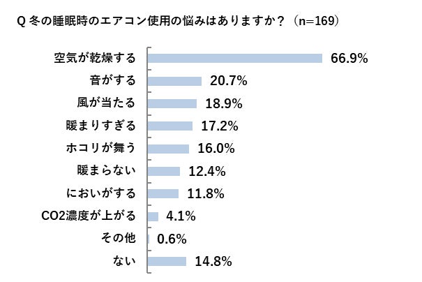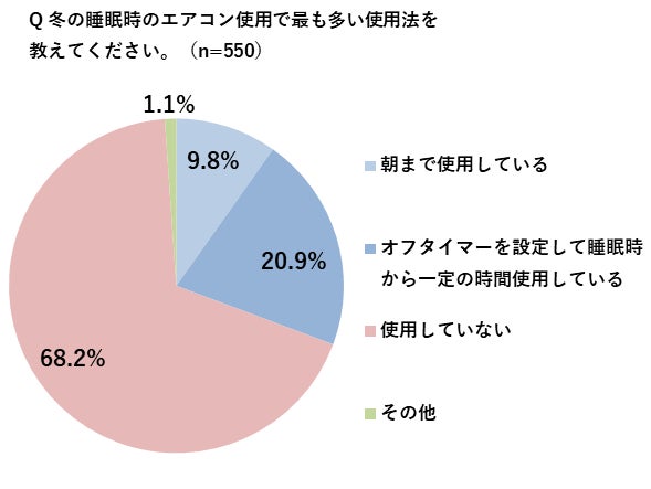 一方で、冬の睡眠時のエアコン使用率は約31%と、寒さなどが原因で睡眠の質が下がると感じているにも関わらず、エアコンを使用していない人が多数いる現状が浮き彫りになりました。
