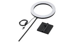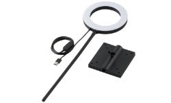 ライトをモニター裏に取り付けられるため、三脚なしで使用でき、デスクのスペースを広く使うことができます。色温度は昼光色、電球色、昼白色の3色から選択可能で、暗い場所でも、リモコンで10段階の明るさ調整ができます。リングの直径は手軽に使える16cmサイズで、マウント部分はVESA規格に対応しています。また、フレキシブルアームを備えているため、ライトの角度・位置を微調整することができます。手前に折り曲げることでデスクライトとしても使用可能で、手元も明るく照らせます。