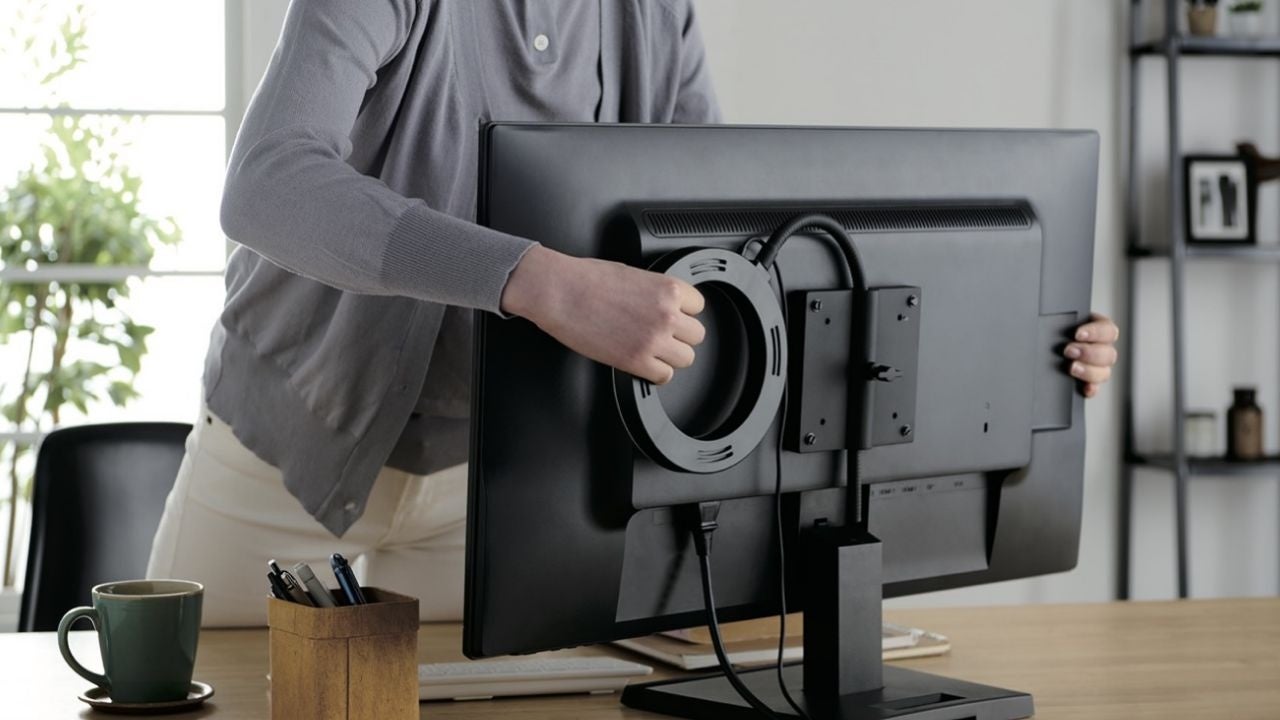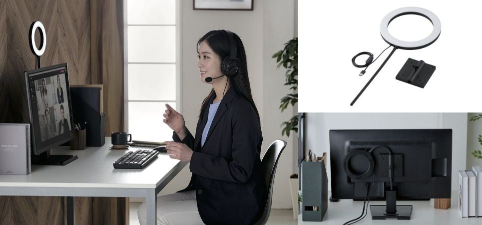 モニター裏に固定できて省スペース!背面に収納できるからデスク回りもスッキリVESA穴固定用リングライト 2サイズを新発売