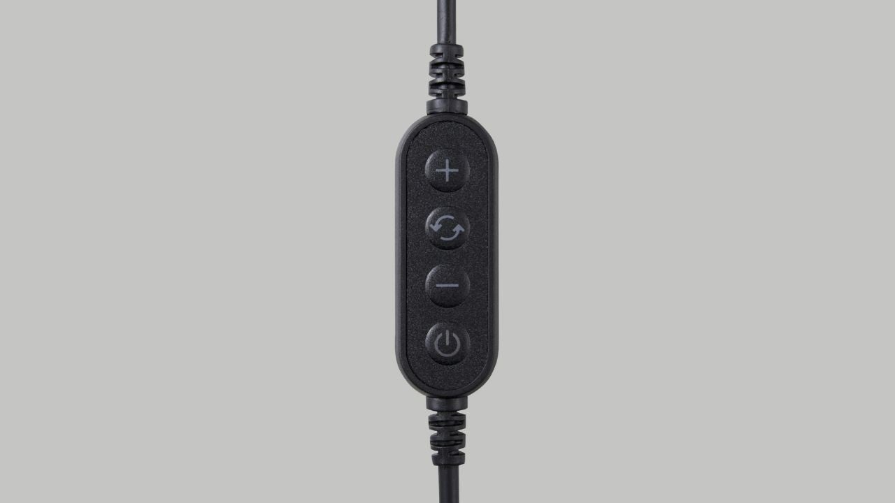 リモコンはケーブルの途中にあるため、手元で簡単に操作が可能です。電源をOFFにした際の色温度・輝度を記憶するメモリー機能を搭載し、毎回起動時に調節する手間をなくします。ケーブルは取り回しのしやすい1.5mです。接続端子はUSB-Aコネクターを採用、お手持ちのAC充電器やモバイルバッテリーで使用が可能です。