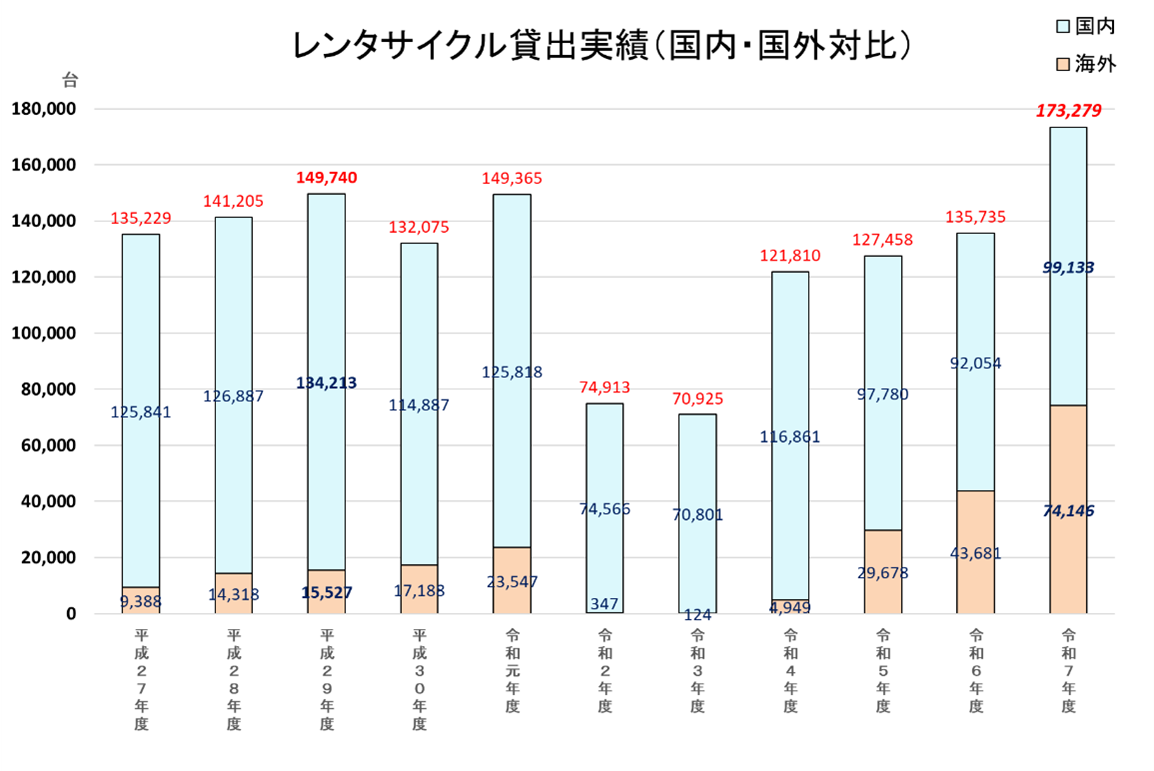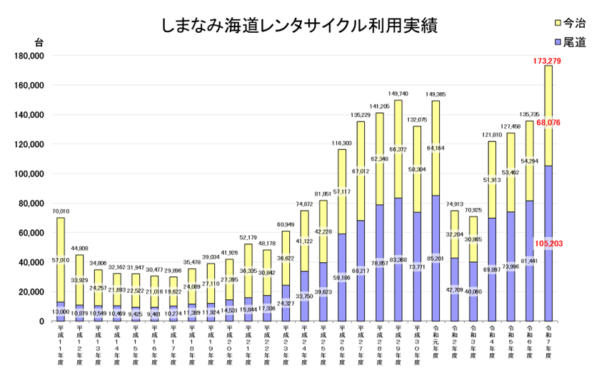 しまなみジャパンは、2025年度レンタサイクルの貸出台数は、過去最高の173,279台を達成いたしました。