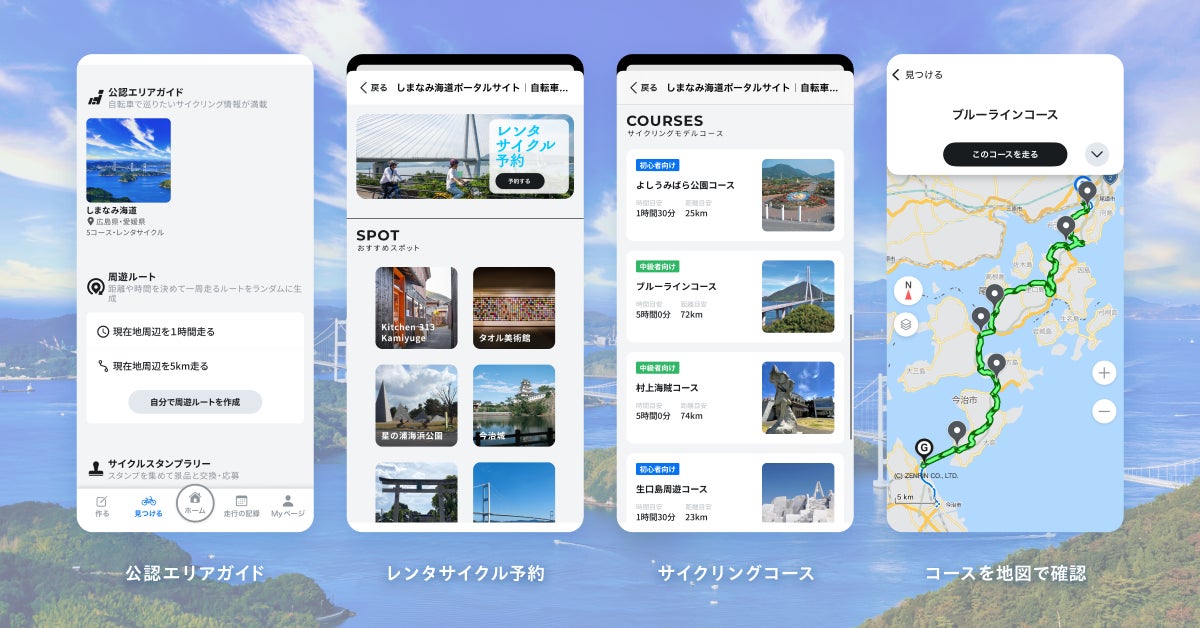 『自転車NAVITIME』内にて、「しまなみ海道」のサイクリングモデルコースやおすすめスポット情報、現地での体験、宿泊施設の情報などを紹介します。