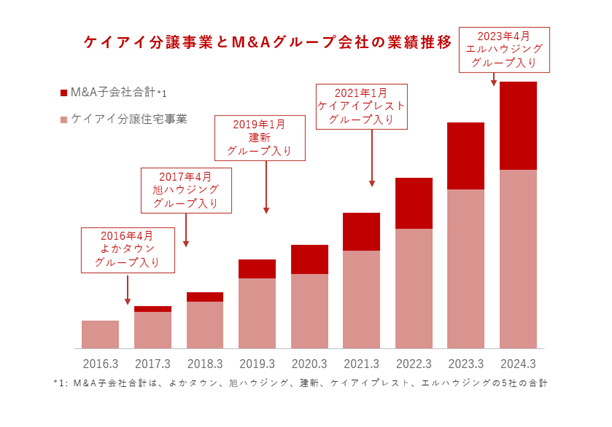 2024年3月期において当社グループは、グループ連結数値で8,202棟を販売し、売上高は前年比17%増収の2,830億円といずれも過去最高を達成しました。この成功の要因の1つとしてグループ会社の高い成長率があげられます。これは当社グループ内での経営戦略によるシナジーが大きく寄与しており、またM&Aの寄与も大きいことから、今後も積極的にM&Aを加速してまいります。
