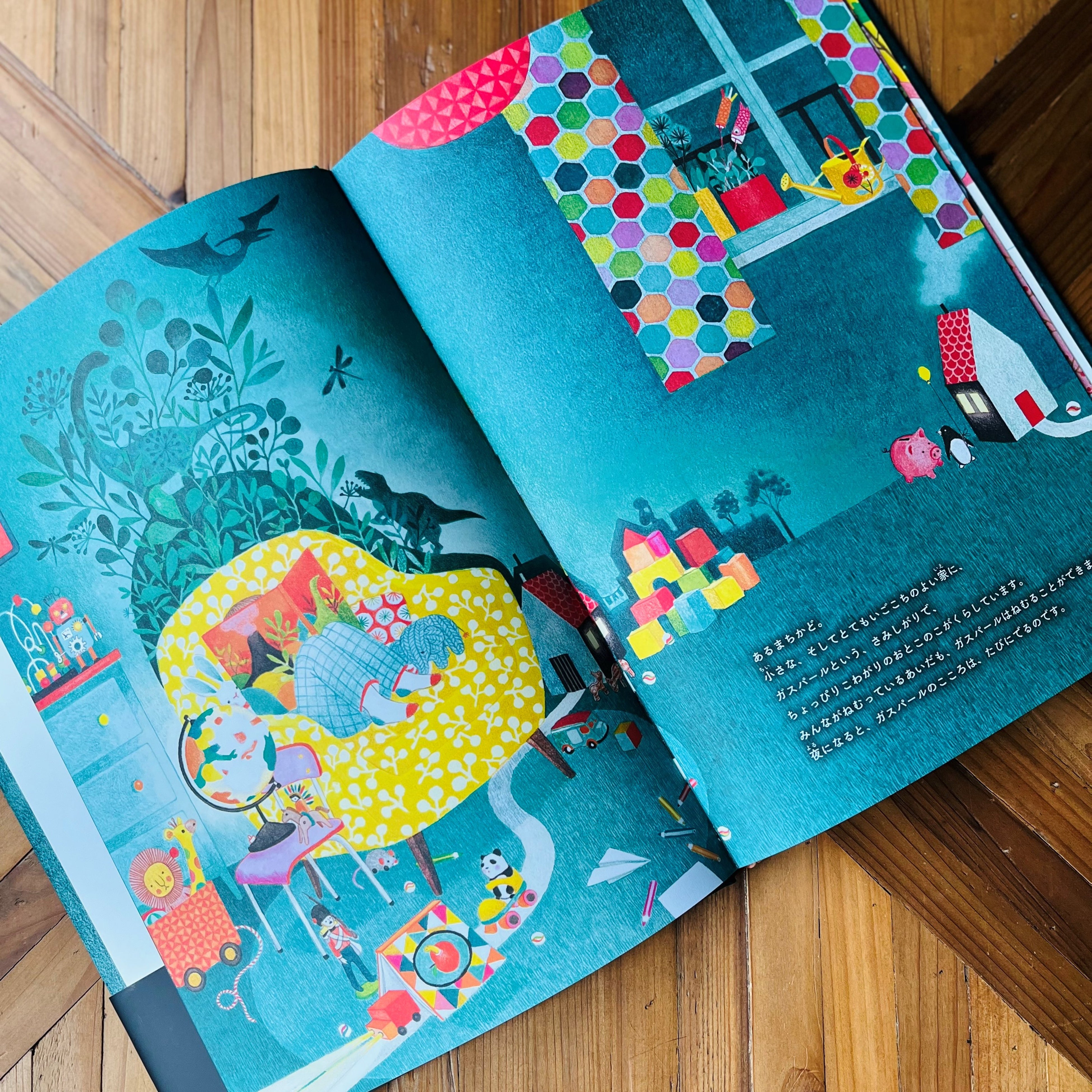 フランスの名高い文学賞、2021年ランデルノー賞作品『Gaspard dans la nuit』の日本語翻訳版。夜がテーマの絵本ですが、色鮮やかな絵が印象的な1冊です。