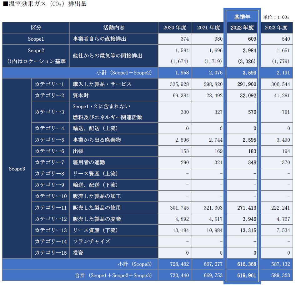 ※ Scope3は、2023年度より精緻化を図るため一部算定方法の見直しを行っています。また、2022年度以前は、一部推計値です。