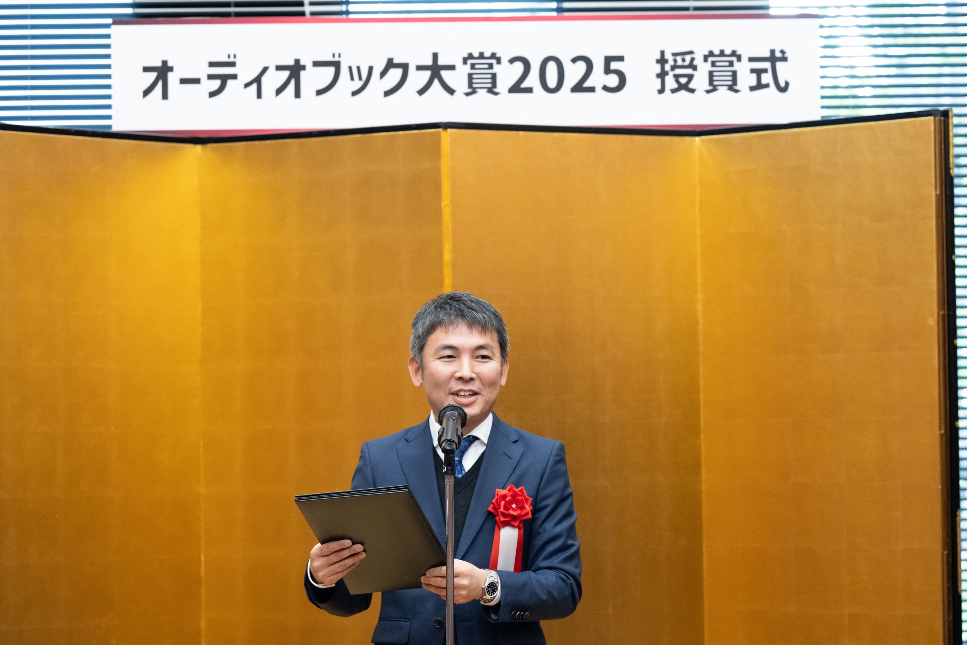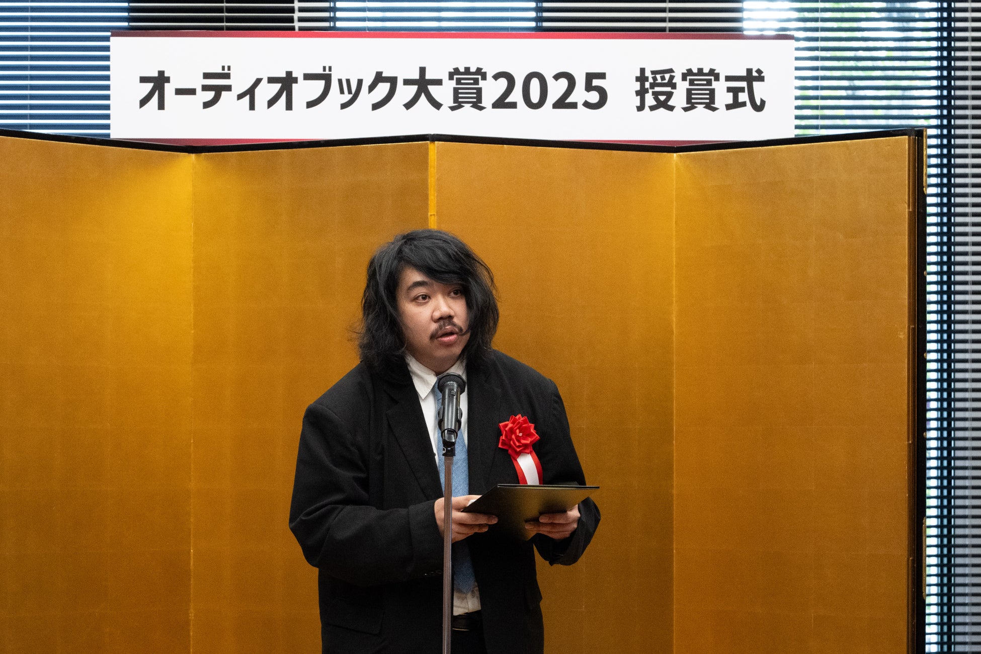 この度は栄えある賞をいただいて大変光栄に思います。しばしば、「働いていると『なぜ働いていると本が読めなくなるのか』を読めないよ」と言われるのですが、そんな方にもオーディオブックは届いているなと日頃からよく感じます。最近、文芸評論家としていろんな方とお話ししていると、まさに『なぜ働いていると本が読めなくなるのか』と考えている人にこそ、もっとオーディオブックが届いたらいいなと思っています。これから日本でもっとオーディオブックが広がったらいいなと願っています。