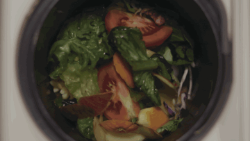 キッチンから排出される野菜や鮮魚の調理くず、食べ残しなどの生ゴミを家庭内で処理して、最大90%まで体積を削減可能です。さらに粉砕、乾燥させた生ゴミの残渣はプランターの再生可能な堆肥として利用も可能です。