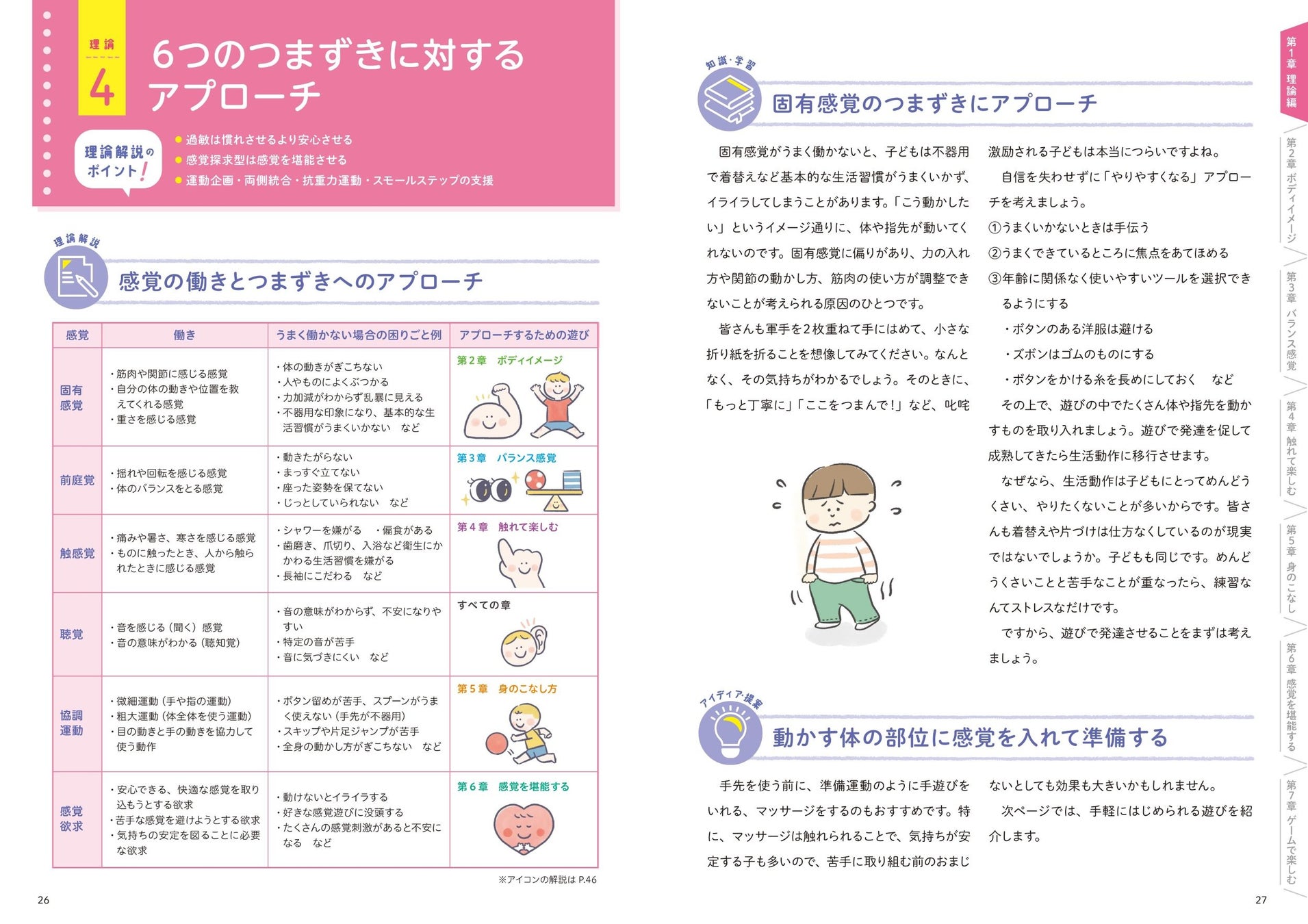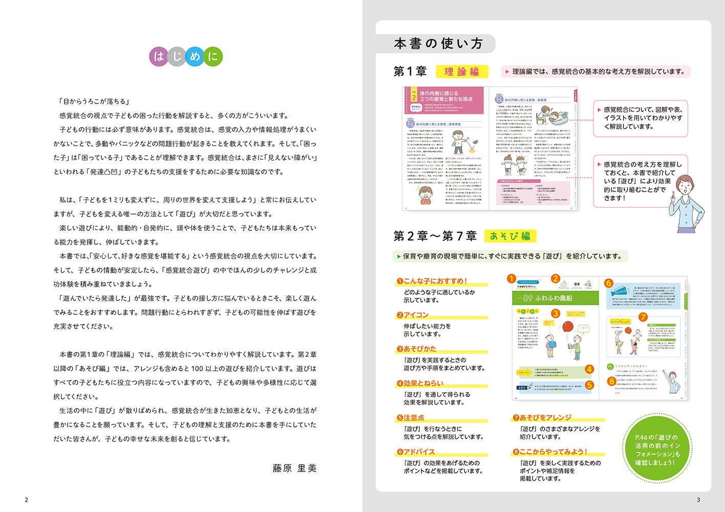 「遊んでいたら発達した、が最強!」「子どもは1mmも変えない」という考えのもと、藤原先生のすぐに実践できるメソッドも充実。保育や療育の現場、家庭で実現可能なアイデアばかり。