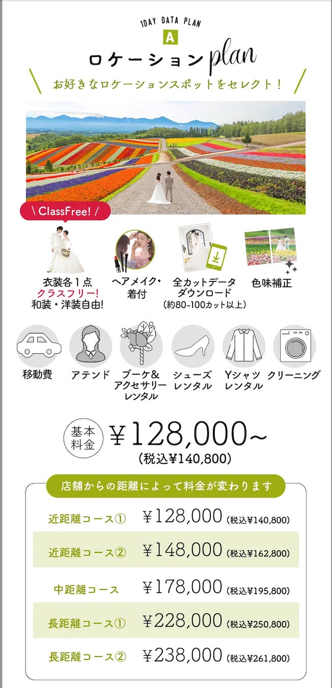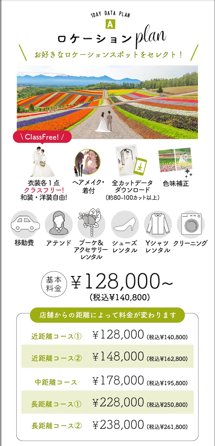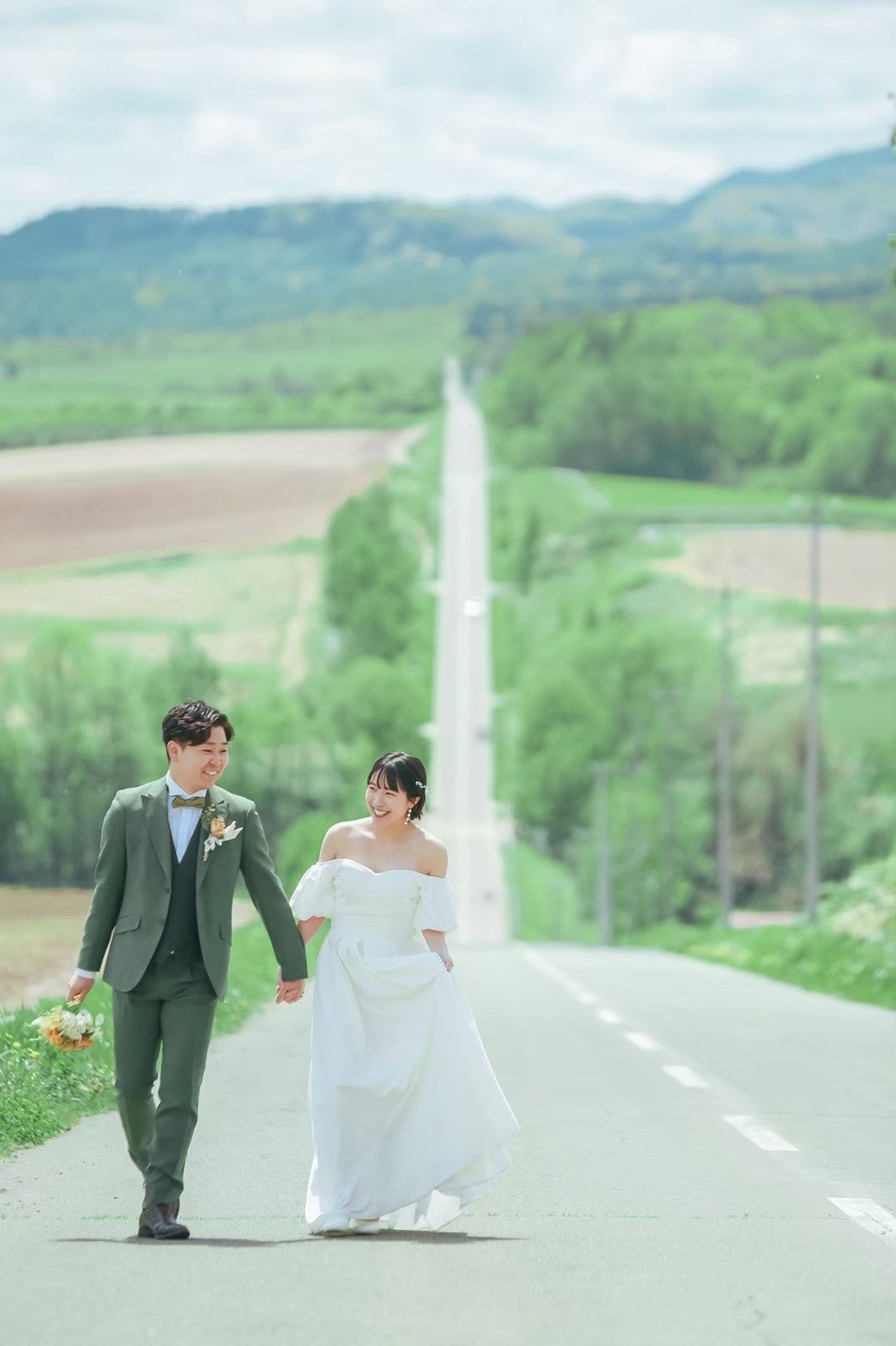 他都府県では味合うことの出来ない広大な「北海道ロケーション」最近では、日本のみならず外国からご旅行で訪れ、旅の思い出にご撮影をするお客様が増えてきています。