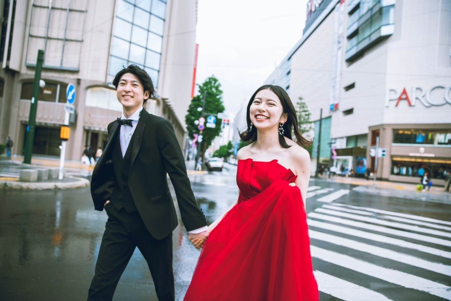 札幌エリアでは街中でロケーションフォトが残せるプランも登場いたしました。4月〜6月は気温も涼しくロケーション撮影もしやすい時期となります。カラードレスや白ドレスで合わせてドラマチックな一枚を残しませんか?