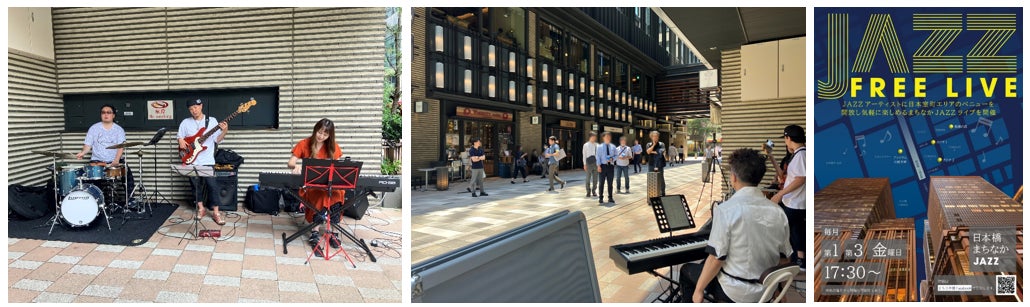 「日本橋まちなかJAZZプロジェクト JAZZ FREE LIVE」は好評の声を受け10月以降から定期開催することが決定しました。毎月第1・第3金曜日の月2回、日本橋室町エリアにて本格的なジャズを無料で楽しめるライブを開催します。