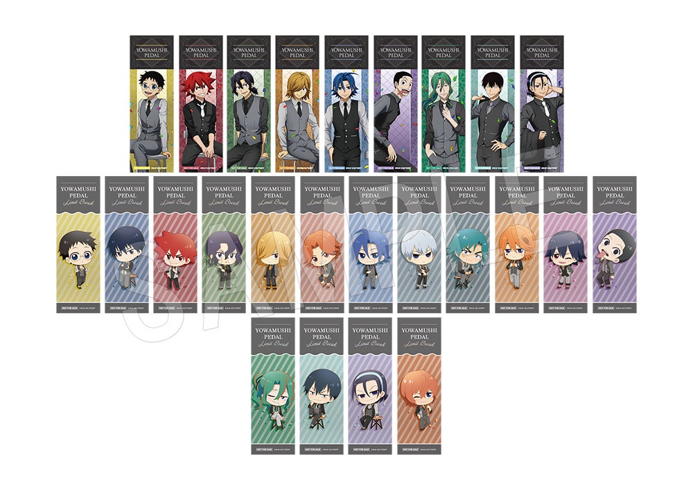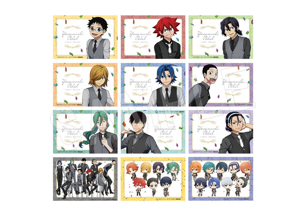 ラインナップ:小野田坂道、今泉俊輔、鳴子章吉、手嶋純太、青八木一、鏑木一差、真波山岳、黒田雪成、葦木場拓斗、銅橋正清、新開悠人、御堂筋翔、巻島裕介、荒北靖友、東堂尽八、新開隼人(全16種)