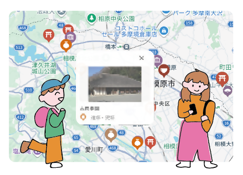 文化財をはじめ、市内のおすすめスポットをマップでわかりやすく紹介しています。さがみはらの魅力がわかるおすすめのコースも紹介しています。