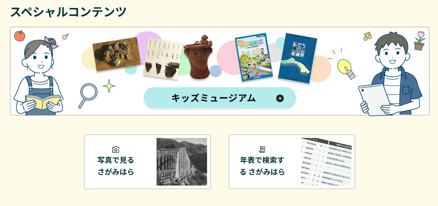 そしてこのたび令和8年3月19日の3次公開では、新たな資料の追加とともに、子ども向けコンテンツや歴史年表、掲載資料を活用したコンテンツなどを公開しました。