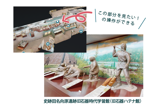 VRで建物や文化財の空間を、画面を動かしながら見ることができます。まるでその場にいるような感覚で見学できます。