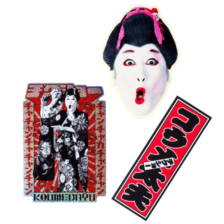 ♪コウメ太夫のステッカーが出るかと思ったら〜、耐水ステッカーが3枚もセットになっていました〜。チクショー!!大迫力のコウメ太夫の「顔面」「千社札」「コウメ太夫」の3枚が、耐水性抜群のステッカーになって登場!雨に濡れても滑らない、スベリ知らずの幸運ステッカー!