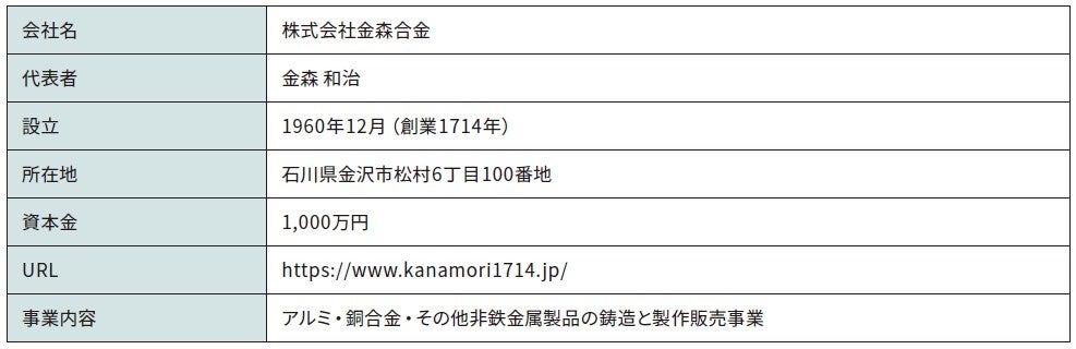 石川県金沢市に本社を置く金森合金は、高精度な精錬技術を強みとした循環型ものづくりでサステナブルな事業を300年以上続けています。その卓越した技術は自社ブランド「KAMAHACHI」を通じたライフスタイル製品をはじめ、各種産業用機械部品、さらにはロケット部品に至るまで、分野を問わず幅広い製品を生み出し続けています。