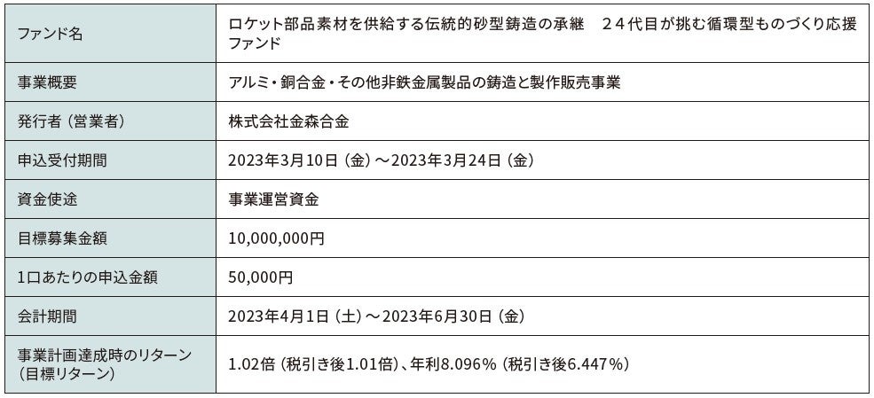 ソニー銀行株式会社(代表取締役社長:南 啓二/本社:東京都千代田区/以下 ソニー銀行)は、投資型クラウドファンディングのプラットフォーム「Sony Bank GATE」において、2023年3月10日(金)より、株式会社金森合金を営業者として、出資の募集の取り扱いを開始しますのでお知らせいたします。