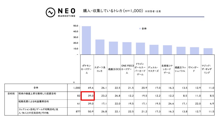 なお「将来の価値上昇を期待した投資目的」の場合でも「ポケモンカードゲーム」はトップとなっており、今後の成長性が期待されていることがうかがえました。