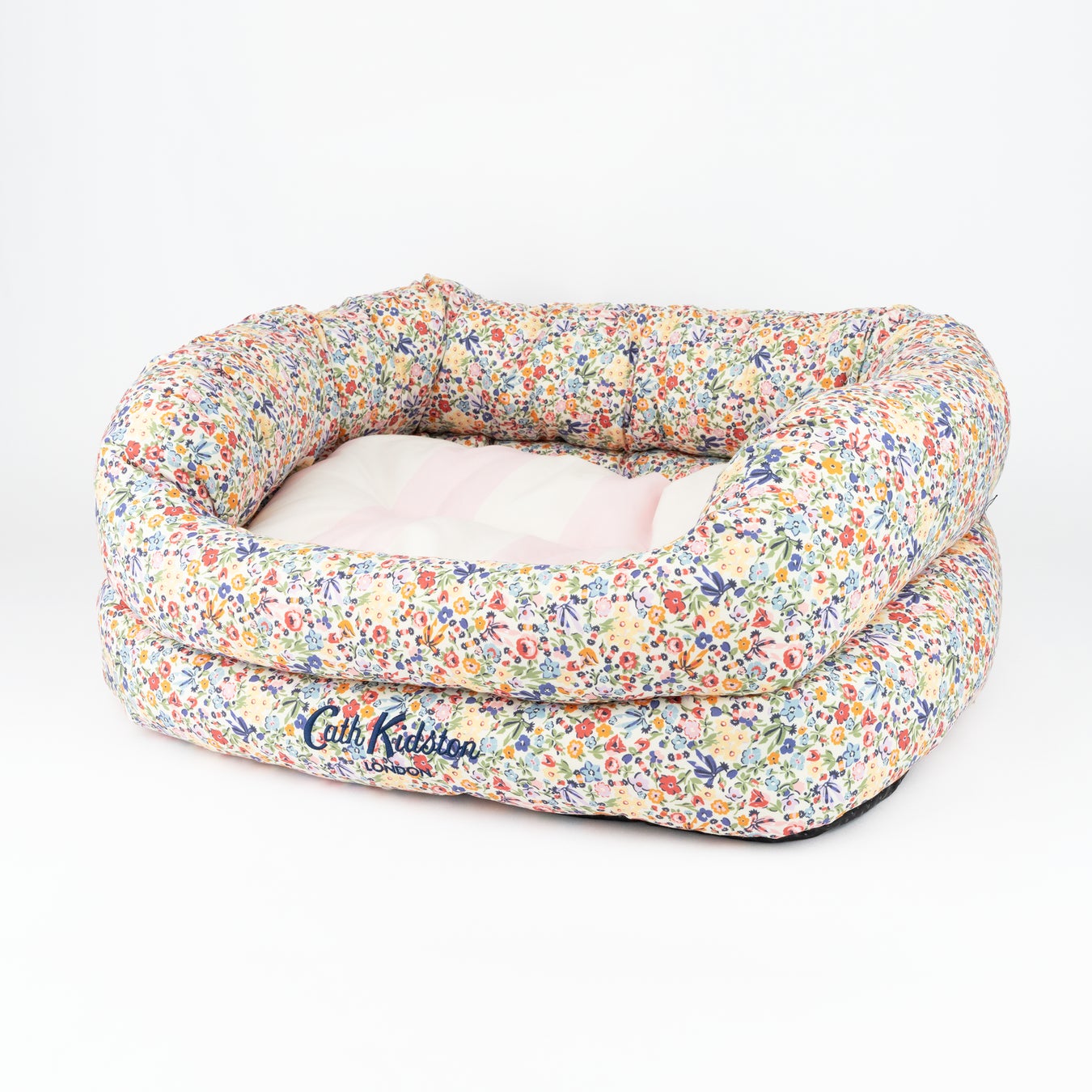 愛犬・愛猫が安らげるペットベッドは、大人気のHarmony Ditsy柄。お部屋に馴染みやすいスクエア型(カドラー型)で、置き場所を選びません。また、中のクッションは取り外しができ、手洗いも可能なので、いつでも清潔に保てます。底面には滑り止め付き。お部屋に置くだけでインテリアを華やかに彩ります。