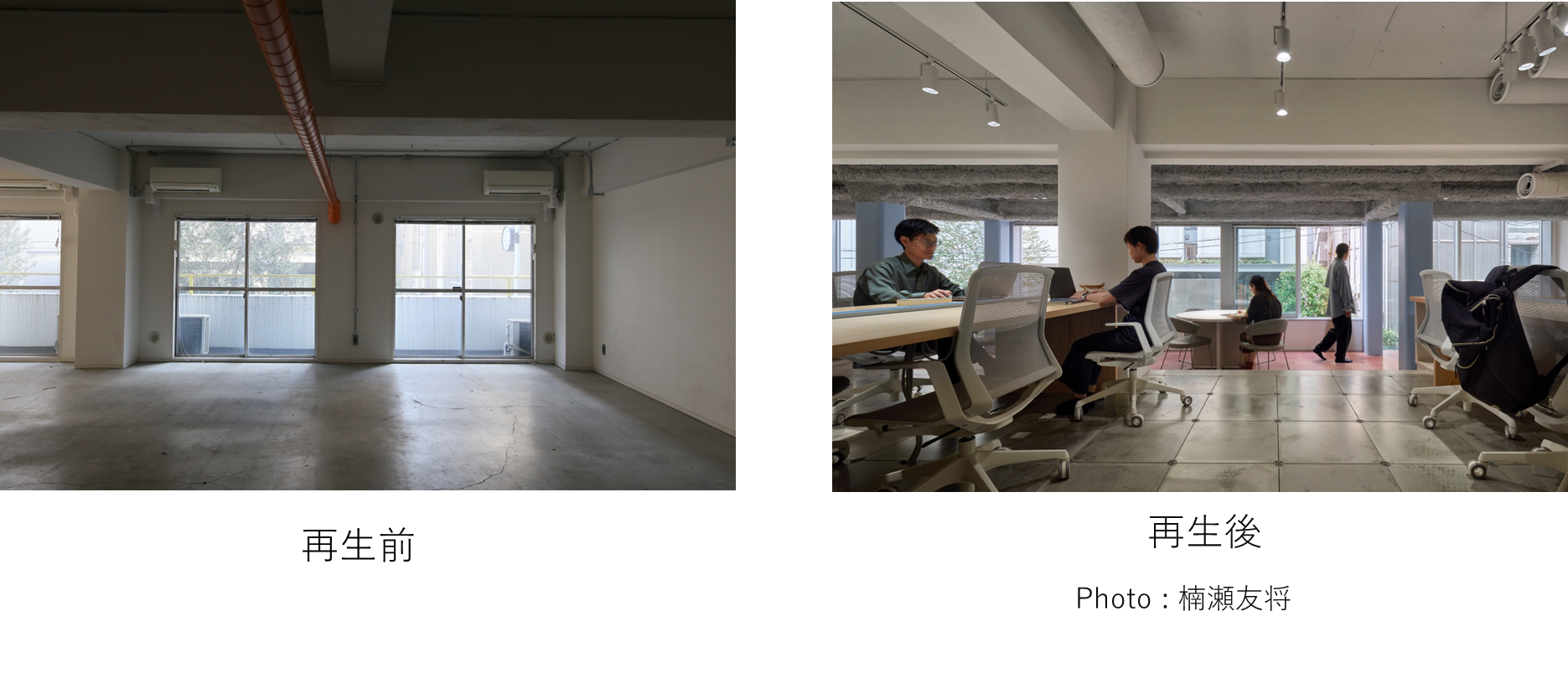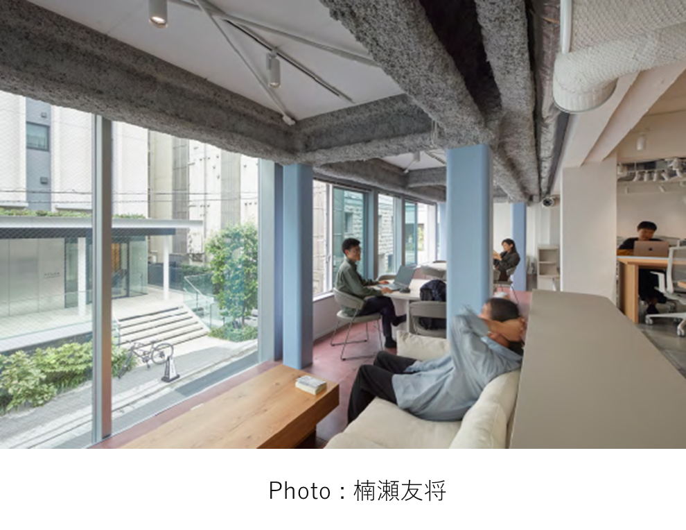 COERU渋谷イーストは二社による初の再生建築案件です。1972年に共同住宅として新築され、2017年のリニューアル以降も竣工当時の間取りのまま、複数のスタートアップ企業が入居し利用されていました。