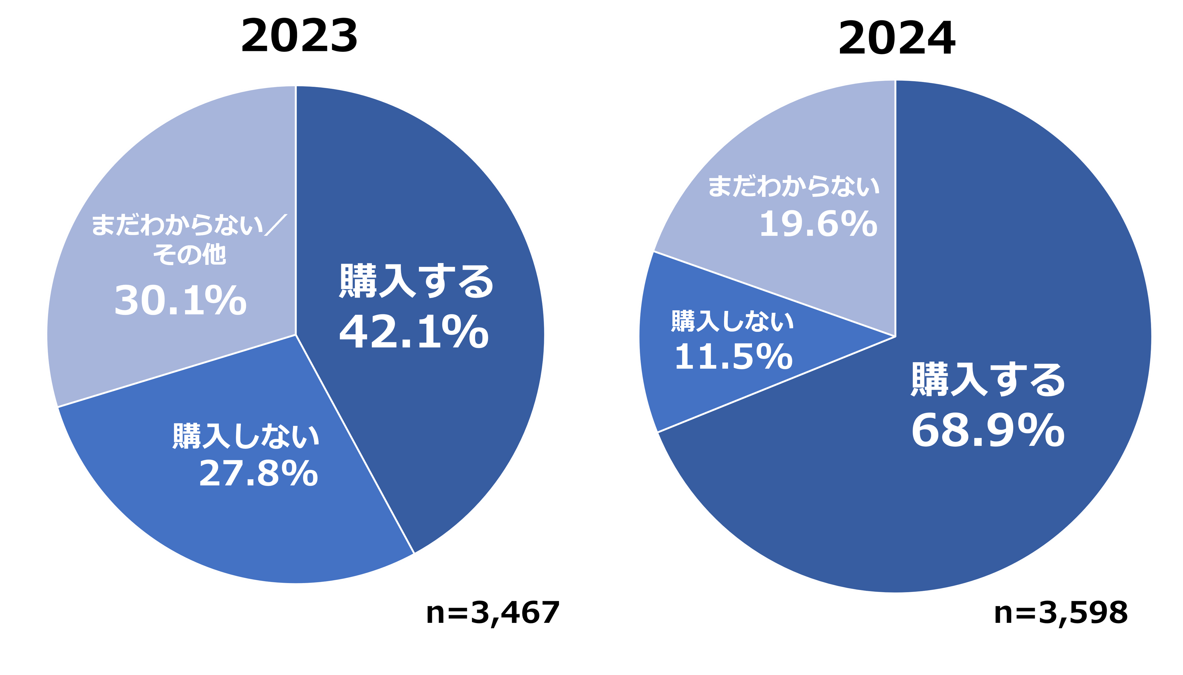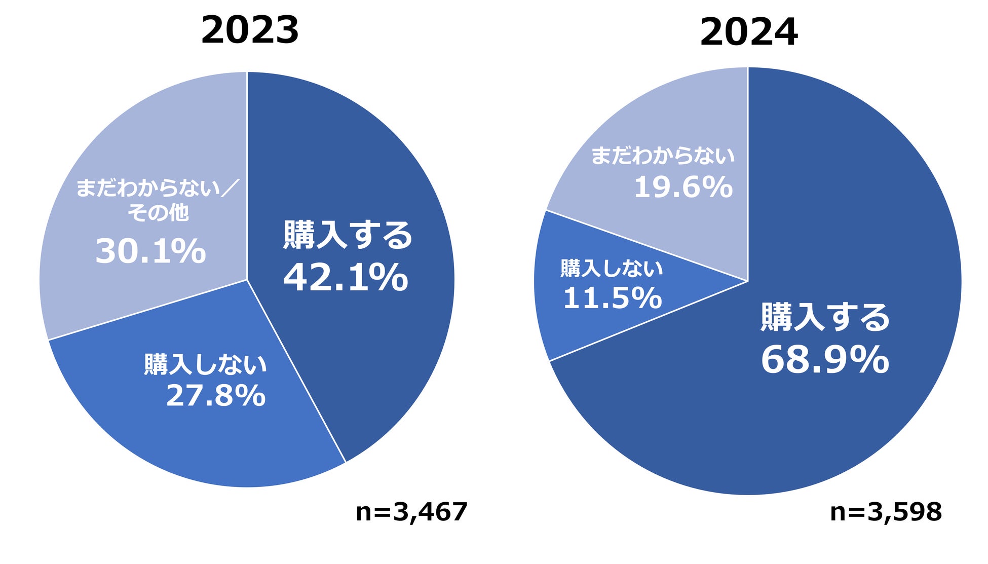 ◆約7割が、2024年のお正月に「おせちを購入すると思う」と回答。昨年よりも27%以上の増加。