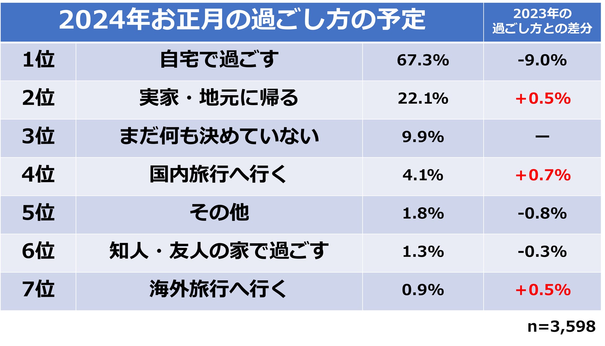 ◆2024年のお正月は「自宅で過ごす予定」(67.3%)が1位