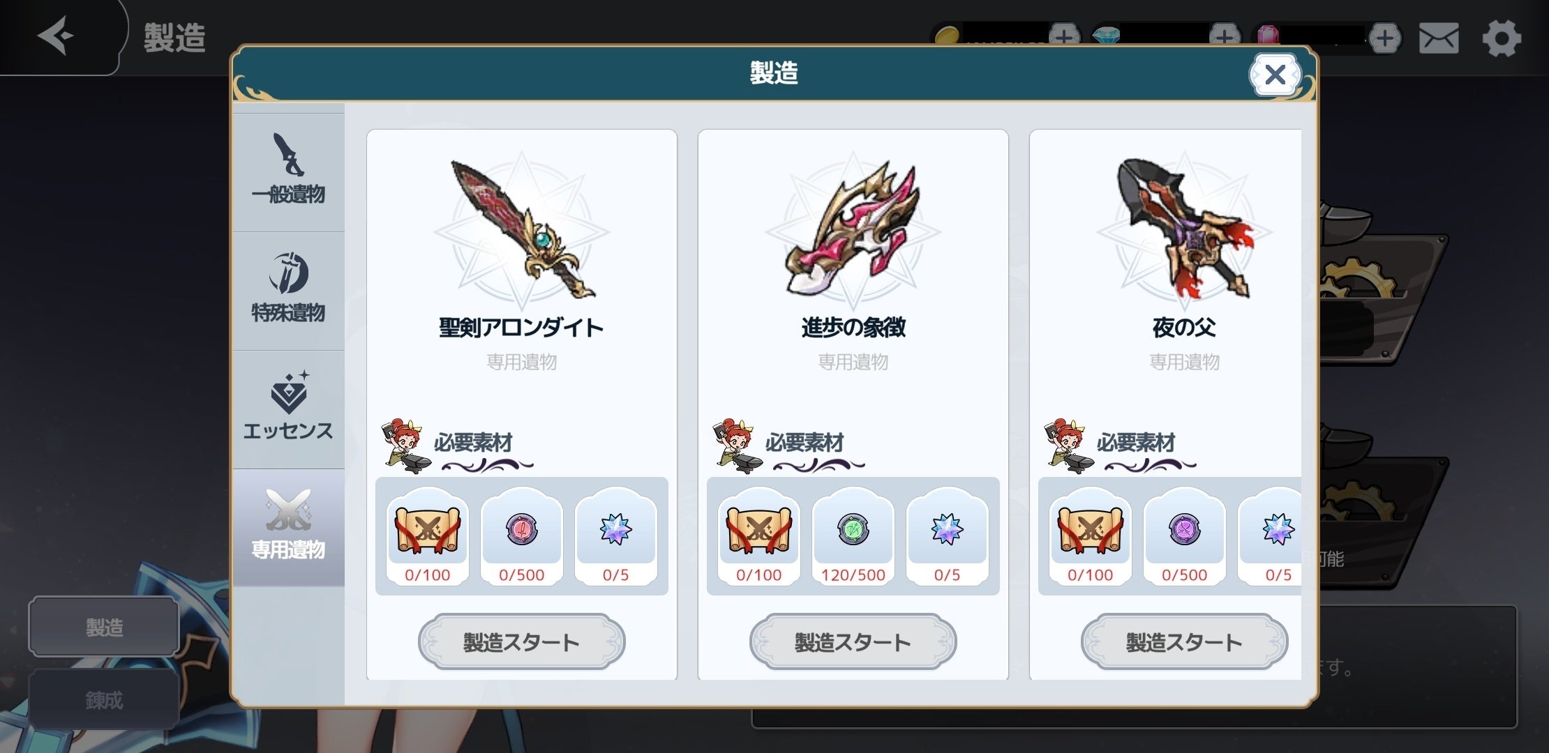 ■製造に専用遺物を製造できる「専用遺物製造」が追加!