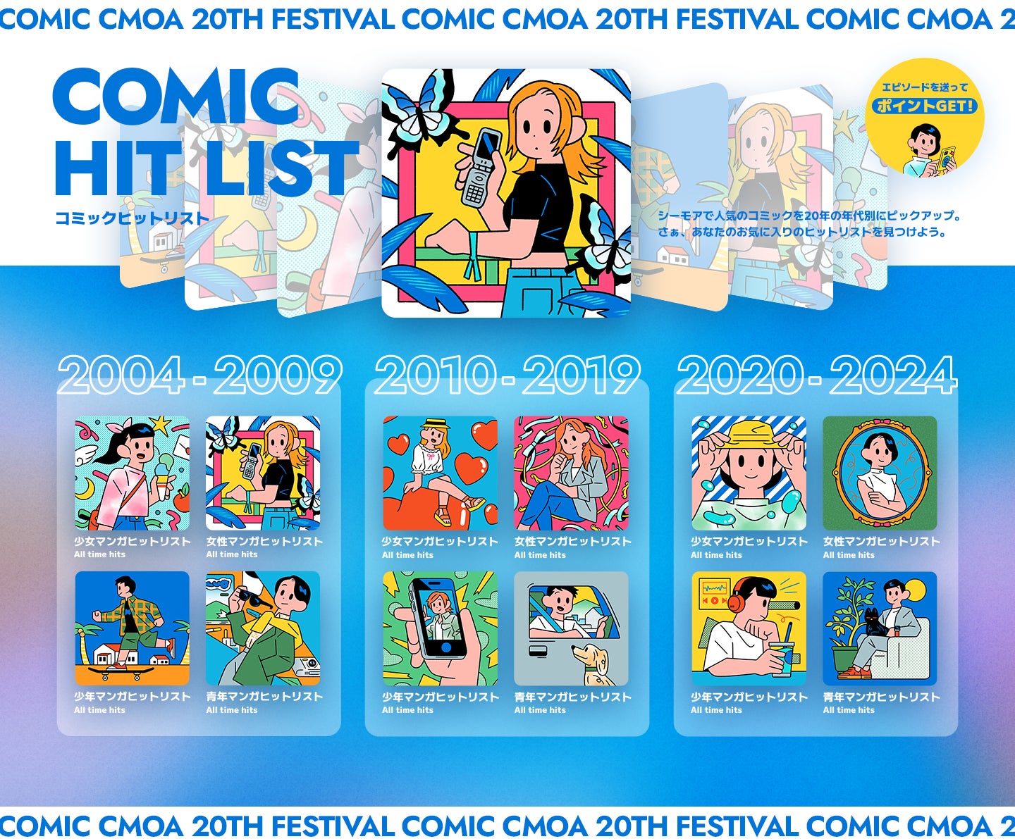 2004年~2009年、2010年~2019年、2020年~2024年の3つの年代別に、これまでコミックシーモア内で売上げの高かった青年・少年・女性・少女の4ジャンル360以上の作品を選出した、ヒットリストを公開いたします。