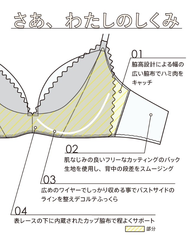 03 広めのワイヤーでしっかり収める事でバストサイドのラインを整えデコルテふっくら