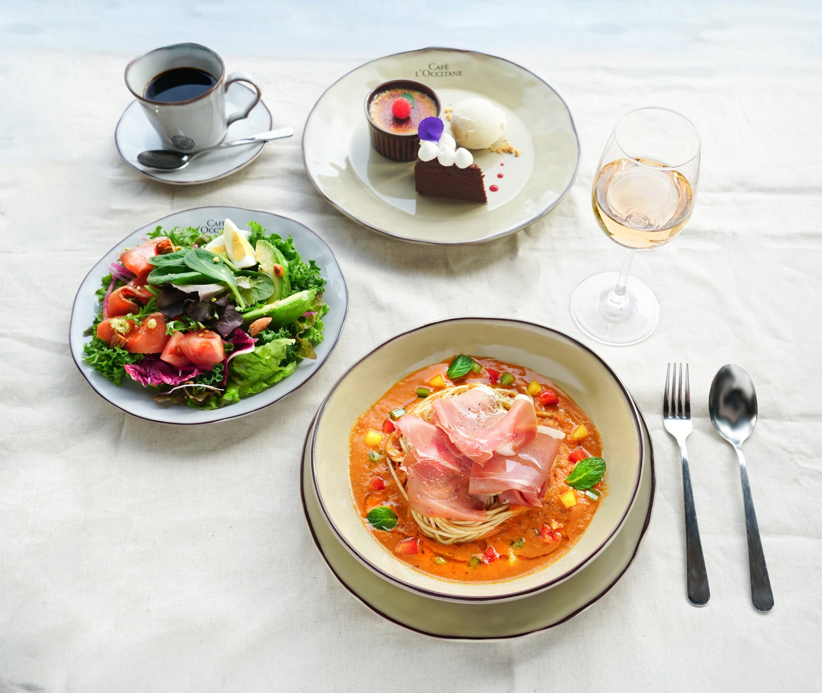 自然の恵みとともに心豊かに暮らす南仏オートプロヴァンスのライフスタイルを提案するロクシタン。四季の自然に寄り添うオートプロヴァンスのライフスタイルを食からも体験できるのがロクシタンカフェです。この度ロクシタンカフェの人気メニューから好きなメニューをチョイスできるディナーコースが登場。サラダ、メイン、デザート、ドリンクもついたセットを、リーズナブルにお楽しみいただけます。