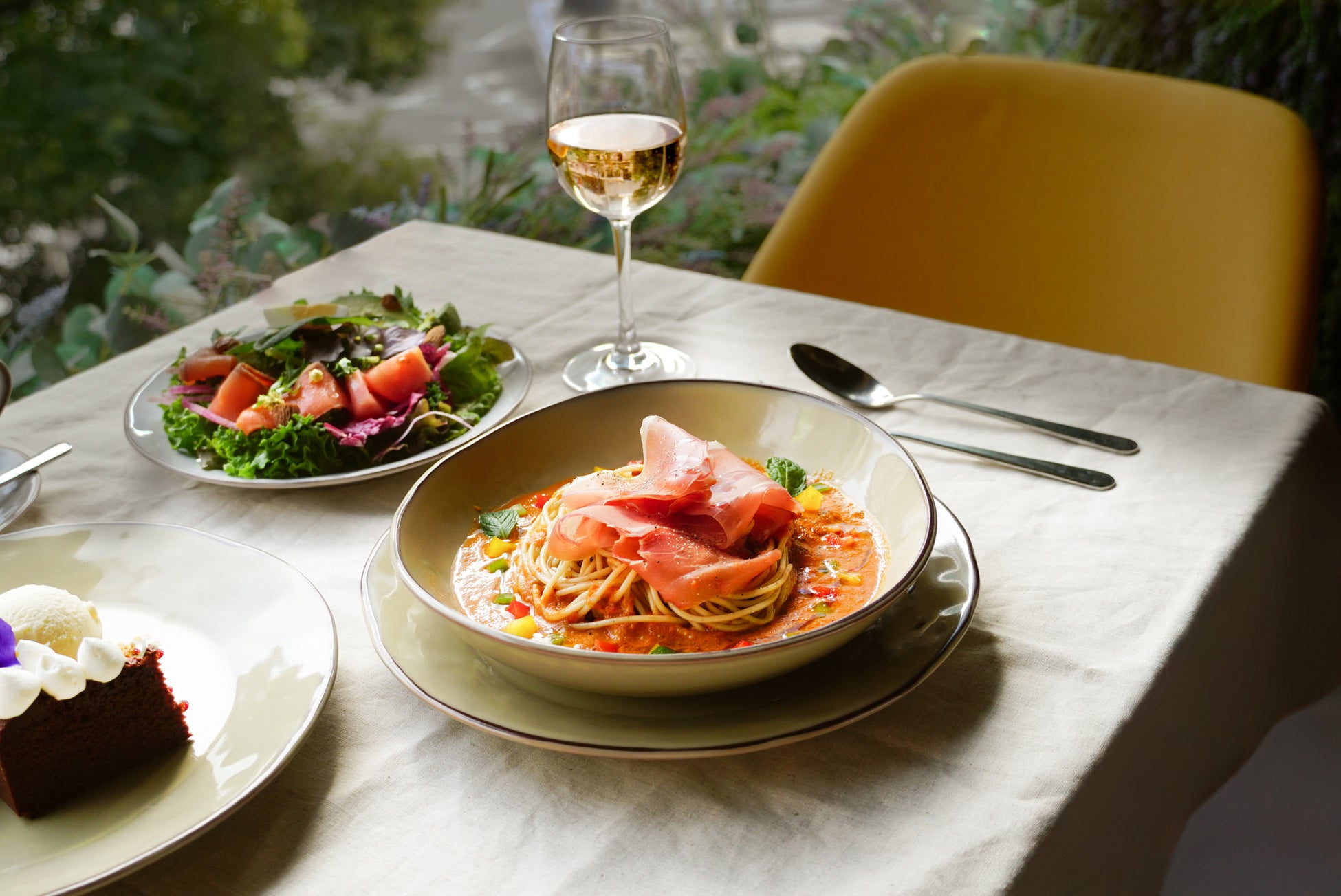 ・フランス産生ハムと南仏野菜ソースの冷製パスタ