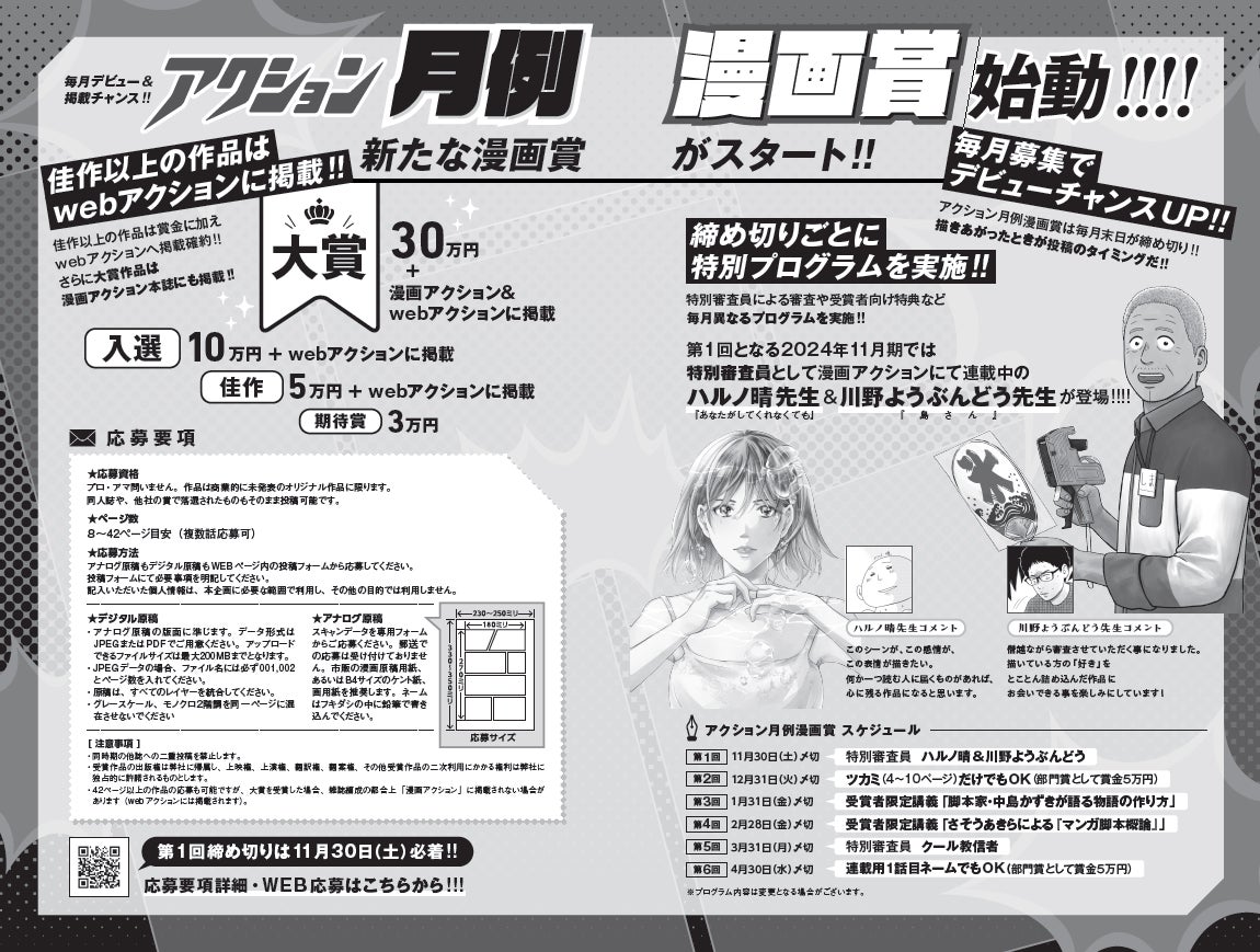 毎月デビュー&掲載チャンス!新たな漫画賞「アクション月例漫画賞」スタート!