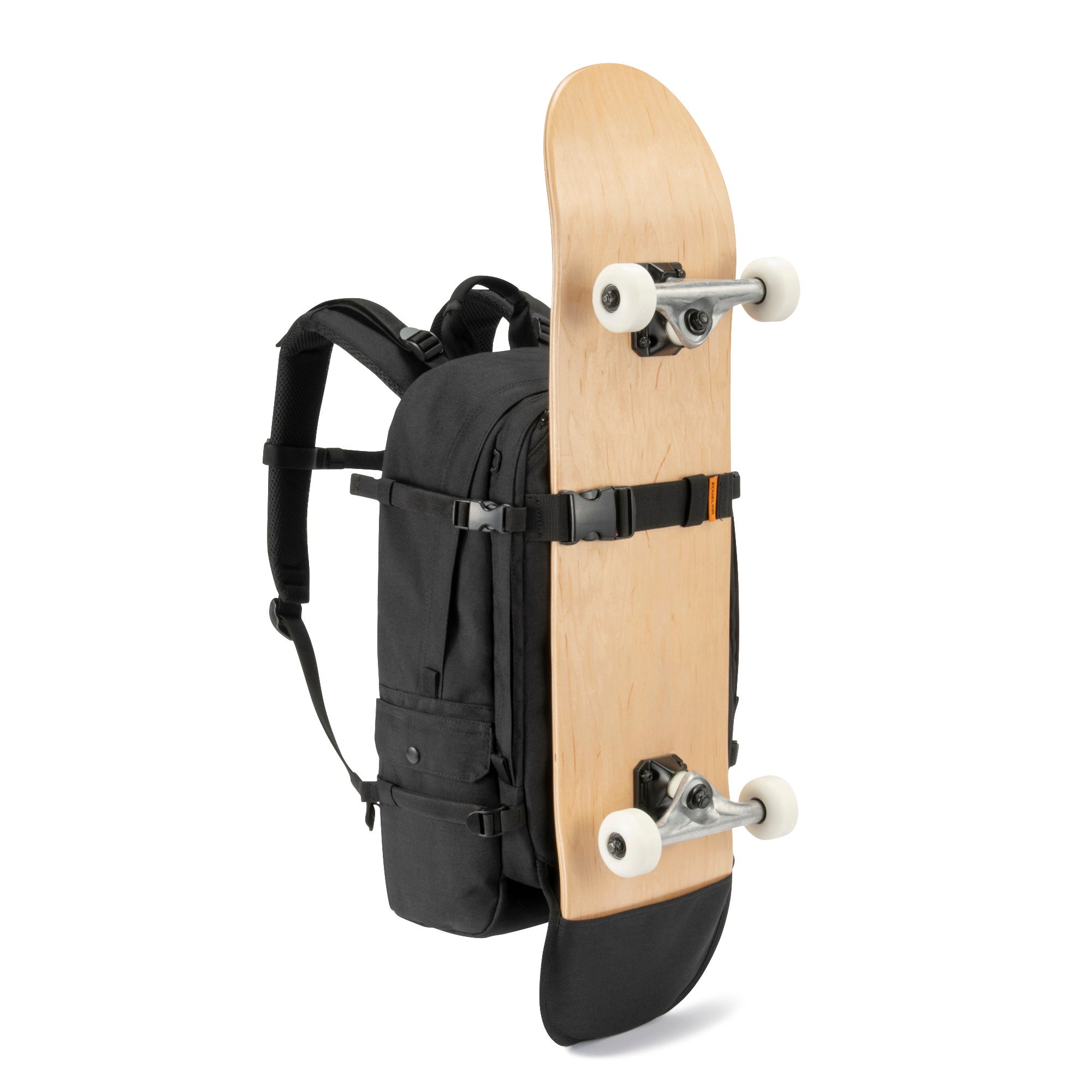 EDGELINKが独自開発した圧倒的な着脱のしやすさと高いホールド感を実現したスケートボードホルダーを装備。汚れがちなスケボーツールをメインの荷物と分けて収納できるオーガナイザーポケットも充実。