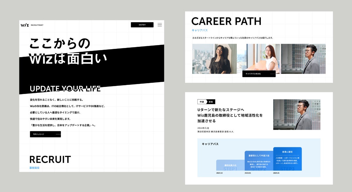 株式会社Wiz(本社:東京都豊島区、代表取締役社長:山﨑 俊、以下「Wiz」)は、コーポレートサイト内の中途採用ページをリニューアルいたしましたことをお知らせいたします。今回のリニューアルでは、事業部長クラスのキャリア採用を強化するため、「面白さ」「シンプルで落ち着いたトーン」「成長イメージ」をコンセプトに、デザインを刷新いたしました。