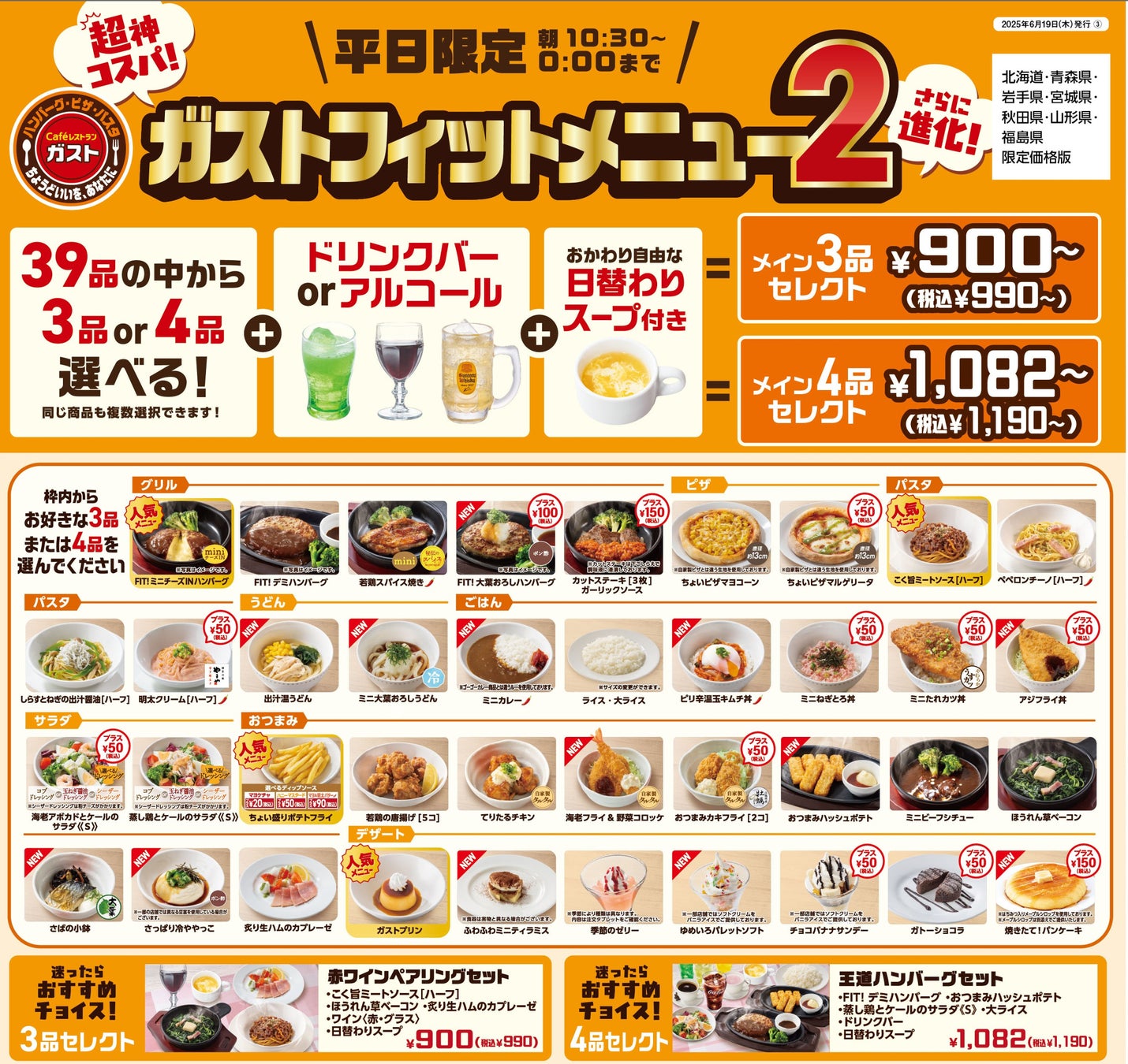 株式会社すかいらーくレストランツ(本社・東京都武蔵野市、代表取締役社長・中島 尚志)が運営するガストでは自由なチョイスで楽しめる“神コスパ”メニューとしてご好評いただいた「ガストフィットメニュー」が、さらにオトク感がパワーアップした「ガストフィットメニュー2」の販売を平日限定で開始します。こちらをスタートするにあたり、「ガストフィットメニュー2&2大特典キャンペーン発表会」を2025年6月18日(水)にガスト 大久保店にて開催いたしました。